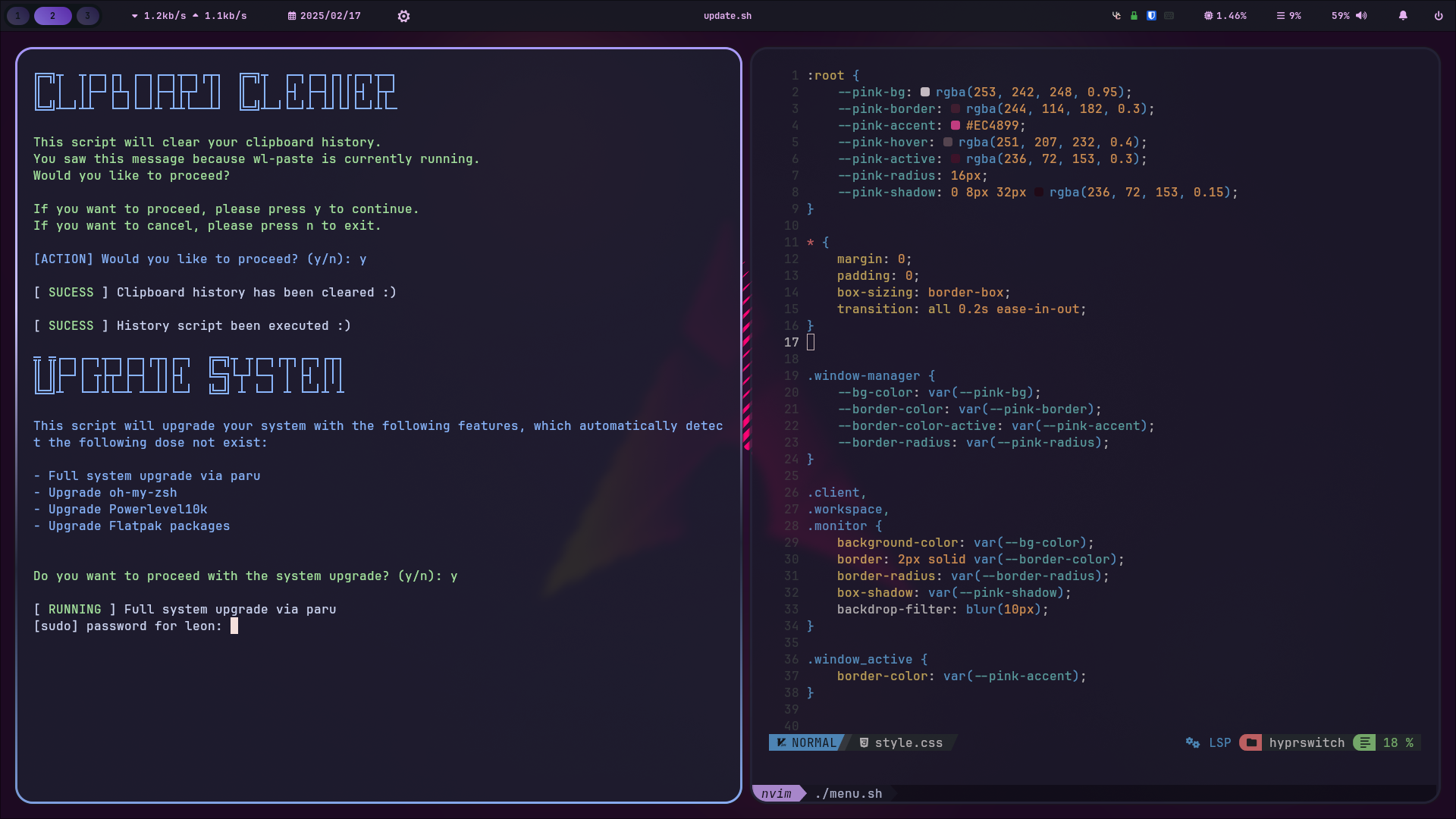 First of all, I want to express my gratitude to everyone who has used or checked out my dotfiles on Reddit, YouTube, or elsewhere. This article is intended for users who want to set up their systems like mine, and I’ll cover everything you need to know.